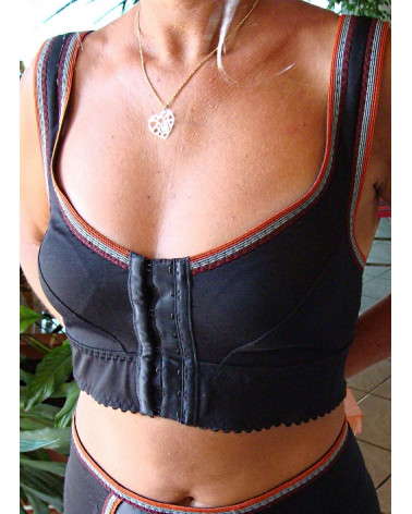 pour commander le soutien gorge aux mesures souhaitées : choisissez la circonférence (mesure G) correspondant à votre tour sous poitrine (mesure prise sur la peau sans serrer), ajuster la circonférence en bas (valeur à ajouter ou retrancher) ; adaptez le soutien gorge à votre morphologie en précisant la profondeur des bonnets  et les spécificités à prendre en compte (vérifier les repères sur la fiche de mesures) ; choisissez la hauteur milieu devant sous basques à ajouter aux 5 cm prévus, préciser si fermeture pour gaucher ou droitier;
